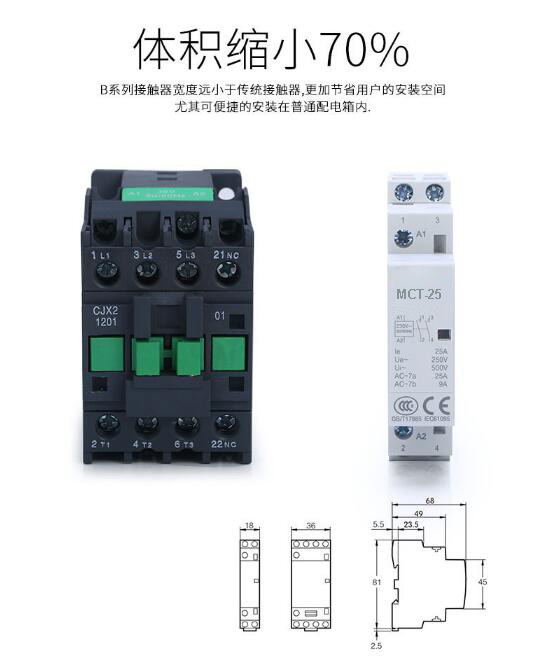 MCT Modular Contactor (also known as analog contactors and architectural contactors) are mainly used in power systems with AC 50Hz/60Hz, rated working voltage up to 400V and rated working current up to 100A. They are used as remote switches and control circuits in AC-1 and AC-7a (non-inductive or low-inductive loads, resistance furnaces, household appliances and similar low-inductive loads). It can also be used to control the load of household motor. Modular Contactors cant't be used in break short-circuit currents, so appropriate short-circuit protective appliances (such as small circuit breakers) should be selected when using them. It meets the standard IEC 61095. MCT contactor can expand auxiliary control, protection and indication functions. MCT Modular Contactor is a kind of control device used for long distance connection and disconnection of inductionless or low inductive load, resistance furnace, household appliances and similar low inductive load, household motor, etc. MCT Modular Contactor are mainly used in homes, hotels, apartments, office buildings, public buildings, shopping malls, gymnasiums and other places to achieve automatic control functions.