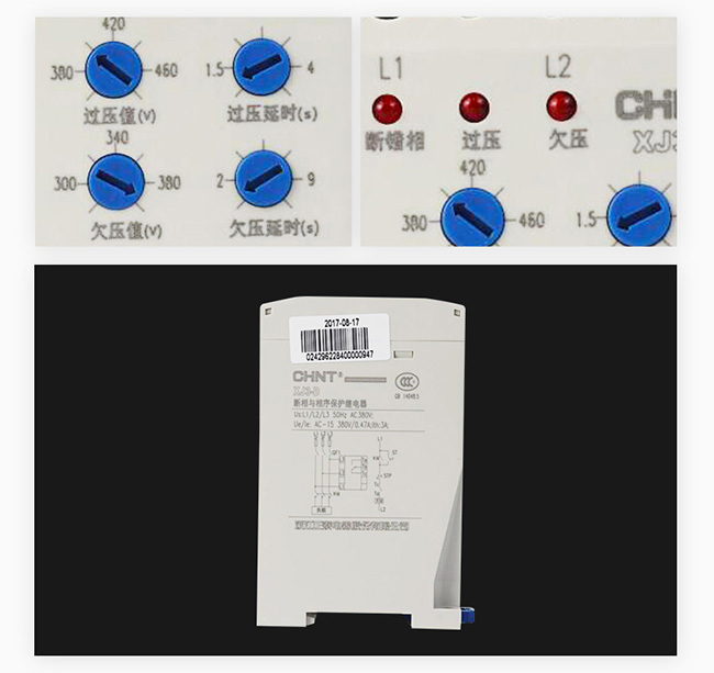 When the phases of a three-phase irreversible device with predetermined phase sequence are connected incorrectly due to maintenance or change of the power supply circuit, the XJ3 series will identify the phase sequence, stop supplying power to the power supply circuit and achieve the goal of protecting the device.