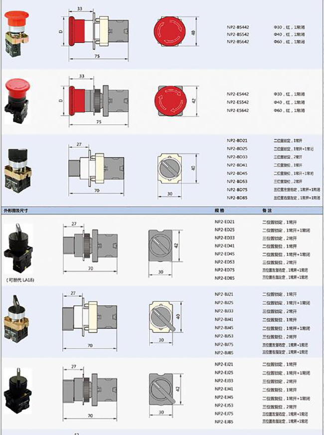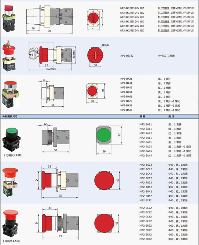 Push Button NP2 Industrial Electrical Controls Illuminated Flush Head 24v 230v 1NO1NC
